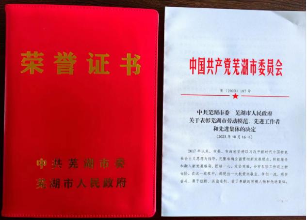 热烈祝贺公司董事长程华荣获“芜湖市劳动模范”荣誉称号